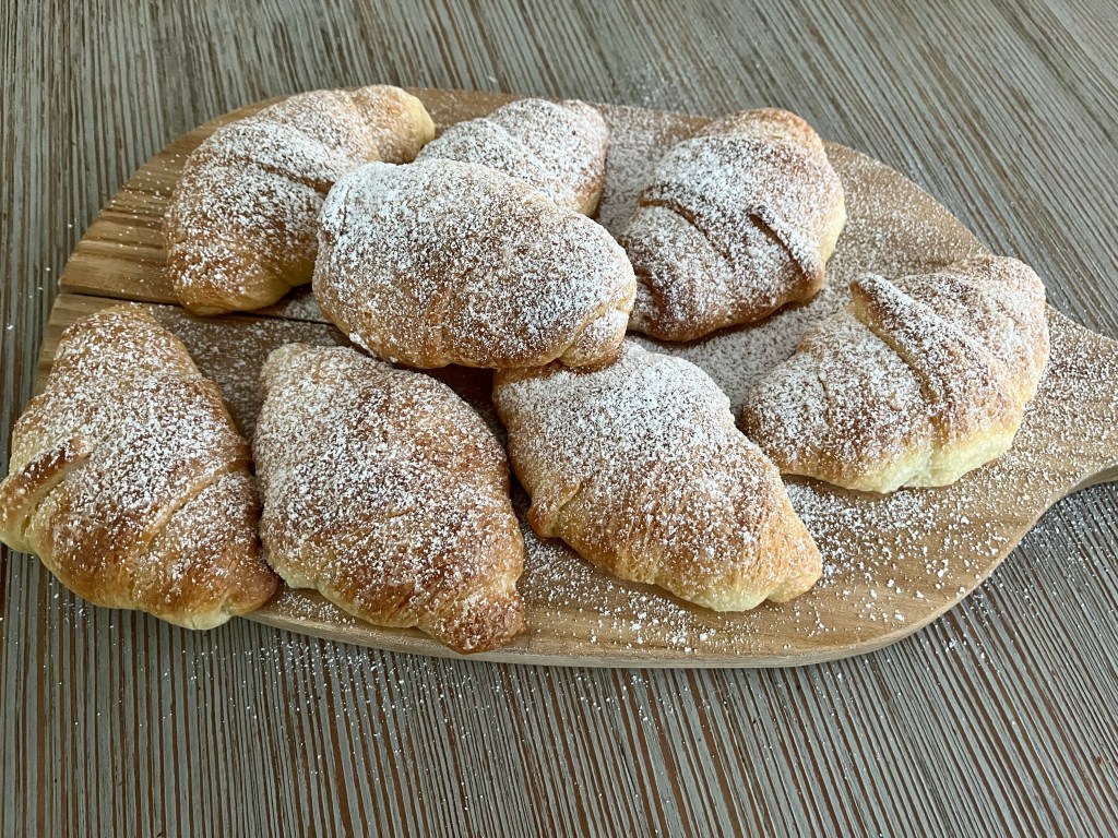 Cookies of all shapes, chocolate filled croissants dusted with powdered sugar, chocolate milk, hot chocolate, coffee, fresh breads lathered in prune and apricot jams, and always, always Nutella.