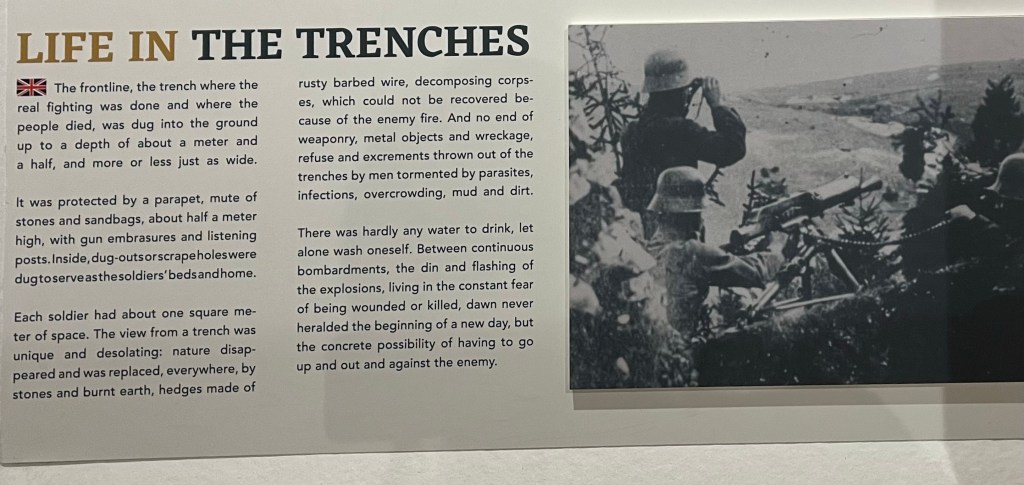 Everything at Belvedere was beautiful in the sunshine from the outside. But then we went in and put our jackets on. It was more than the chilly stone passageways inside the roof of the mountain’s belly that chilled me to the bone; it was the echos of soldiers, their memories of war. The Belvedere is like a museum, each room labeled and full with information and artifacts from what happened there.